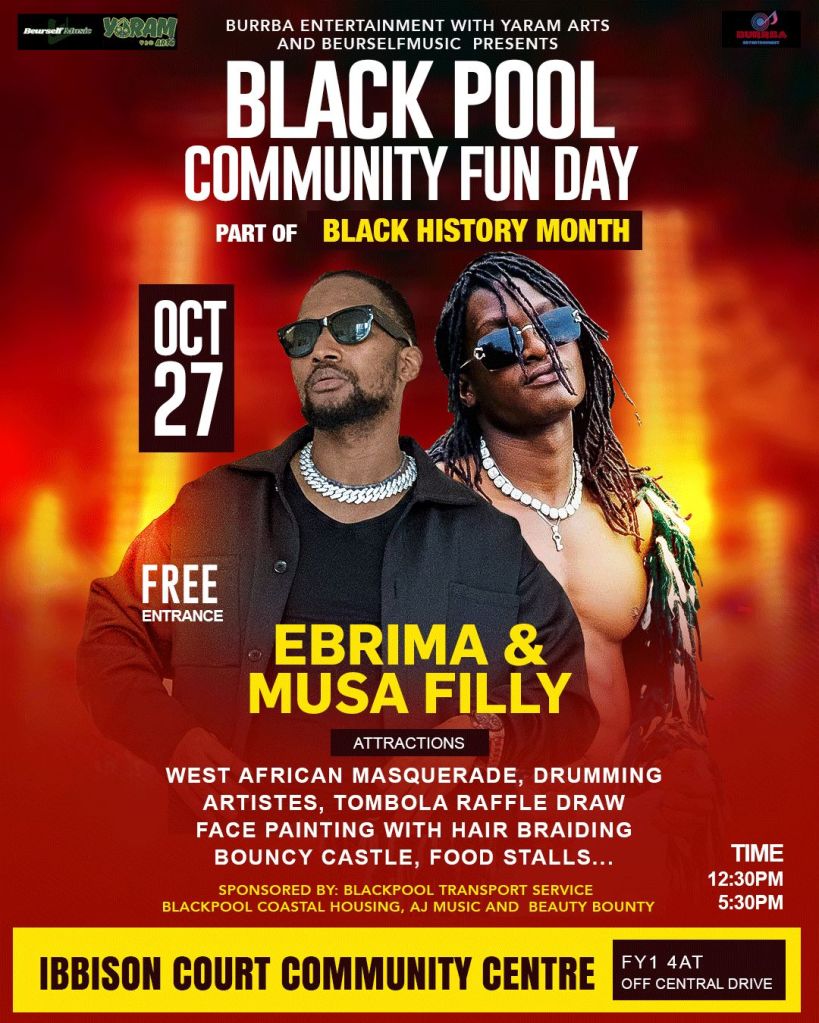 - Burrba Entertainment in collaboration with Yaram Arts and Beurselfmusic have organised a Communities Family Fun Day Ibbison Court Community Centre between 12.30pm and 5.30pm on the 27 October. Join them for Gambian cuisine, activities and games, live music, face painting, bouncy castle and more.